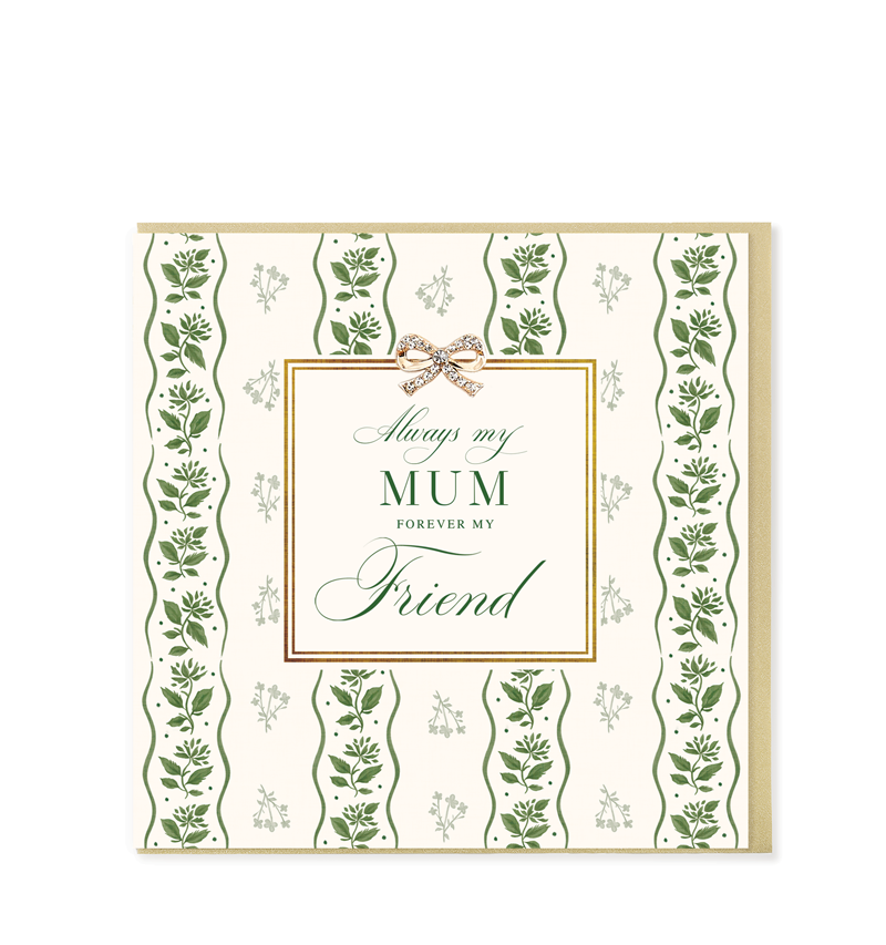 Gorgeous luxury greetings cards with gold foil sentiment. Hand embellished with a diamanté bow jewel. These cards have been printed on luxury FSC board. Presented with a pearlescent Gold envelope and cello wrapped. Blank inside.