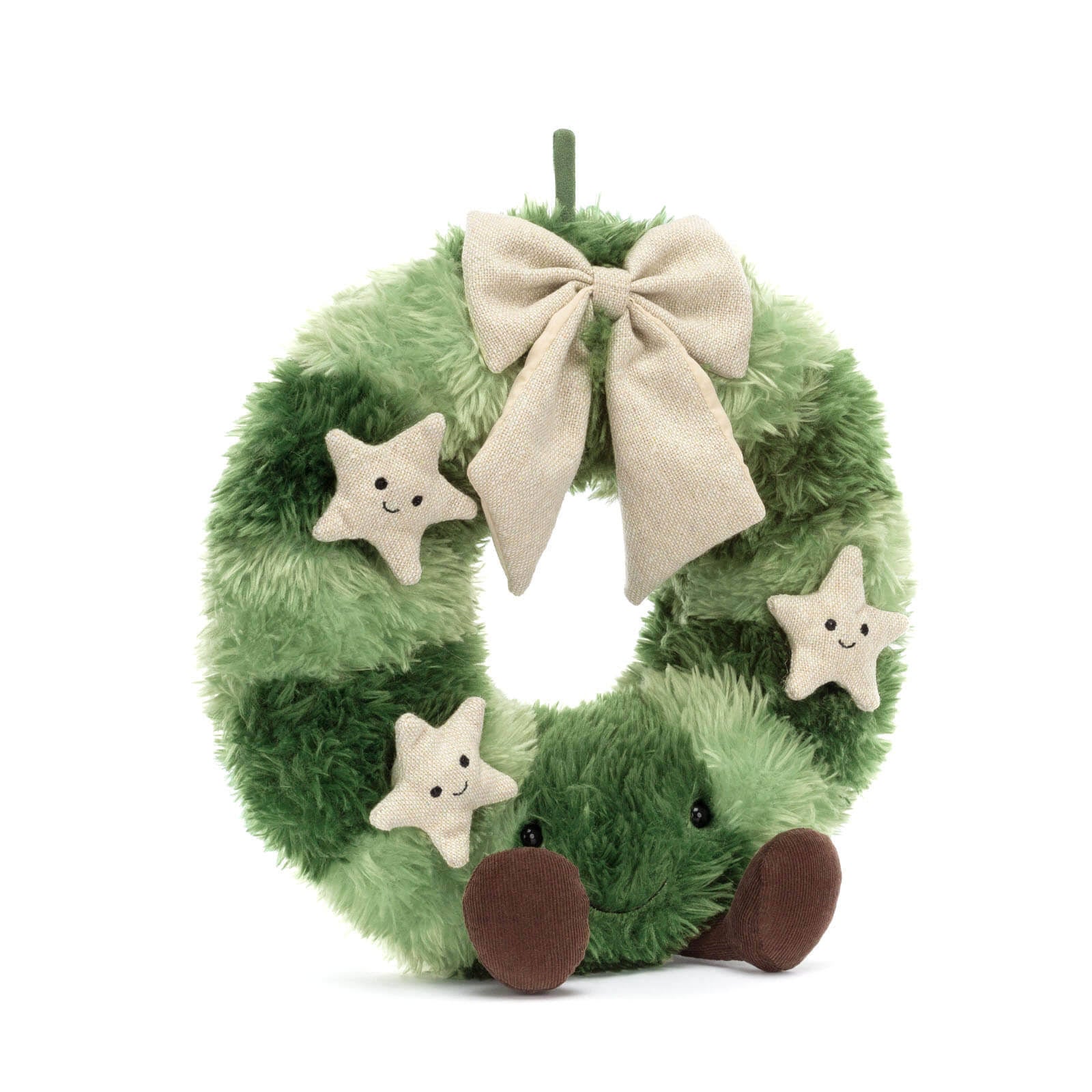No need to throw away the wreath at New Year – Amuseables Nordic Spruce Wreath is evergreen! Welcoming guests with a warm stitch smile, this textured wreath has two-tone foliage, a cotton hessian bow and a choir of matching stars. With a suedette hanging loop and chocolate cord boots, this wreath sets the mood to merry.