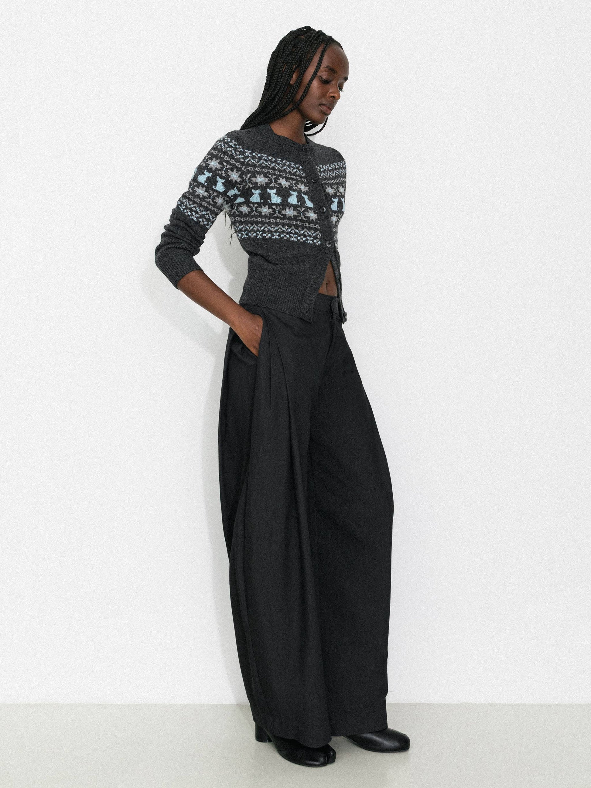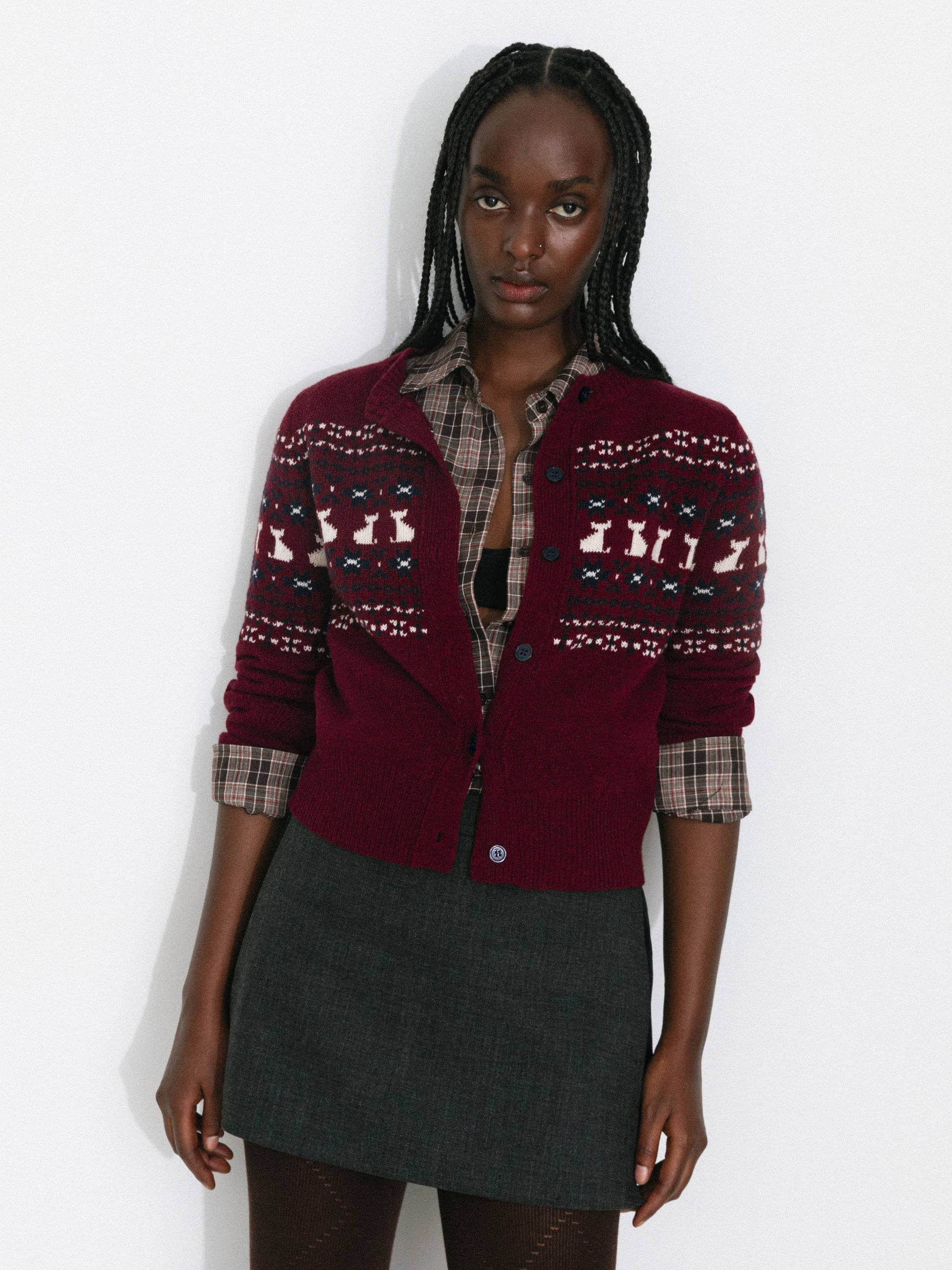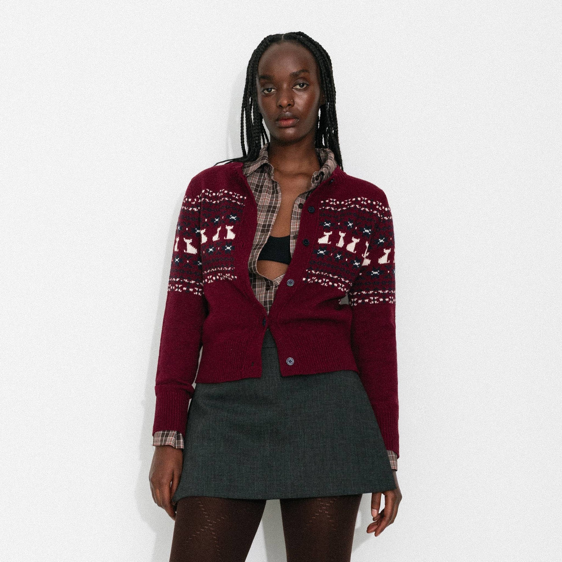 CUBIC Cat Print Fair Isle Wool-Blend Cardigan: Gray / M