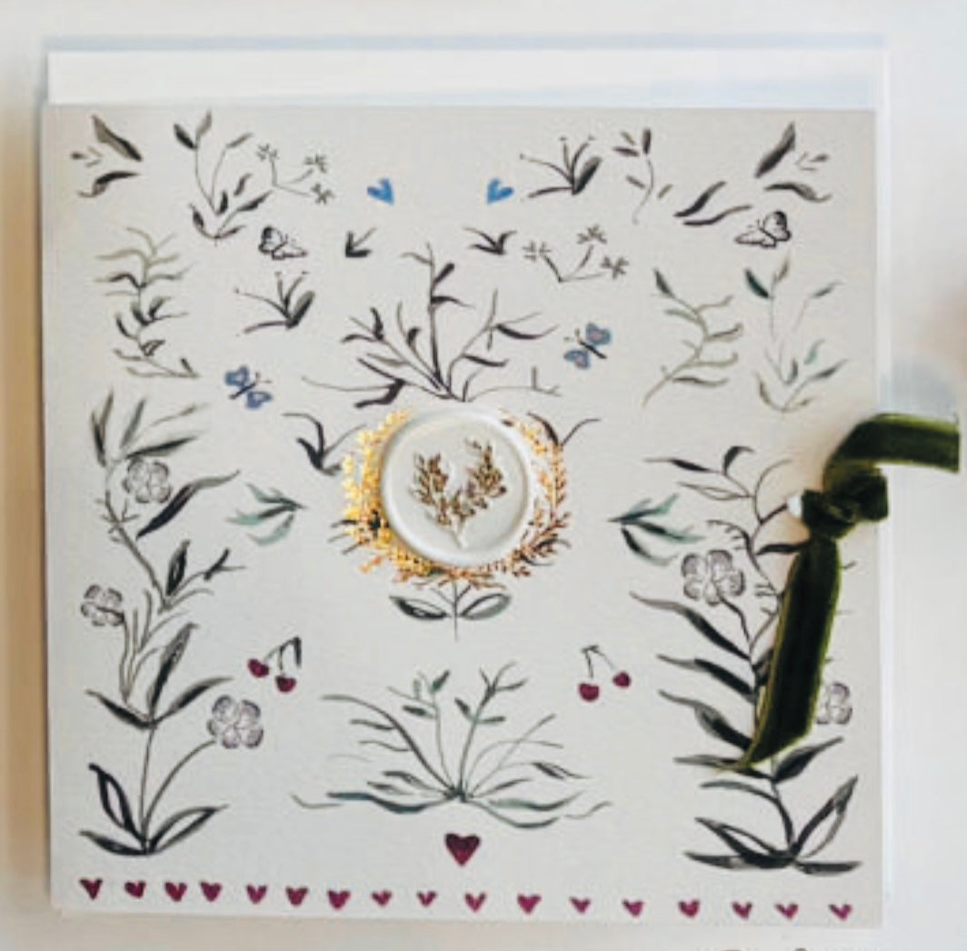 Hand drawn designs by talented designers in the Uk, hand foiled with added attachments of ‘wax seals’, glitter, sequins or tassel. Comes with a heavy white envelope.