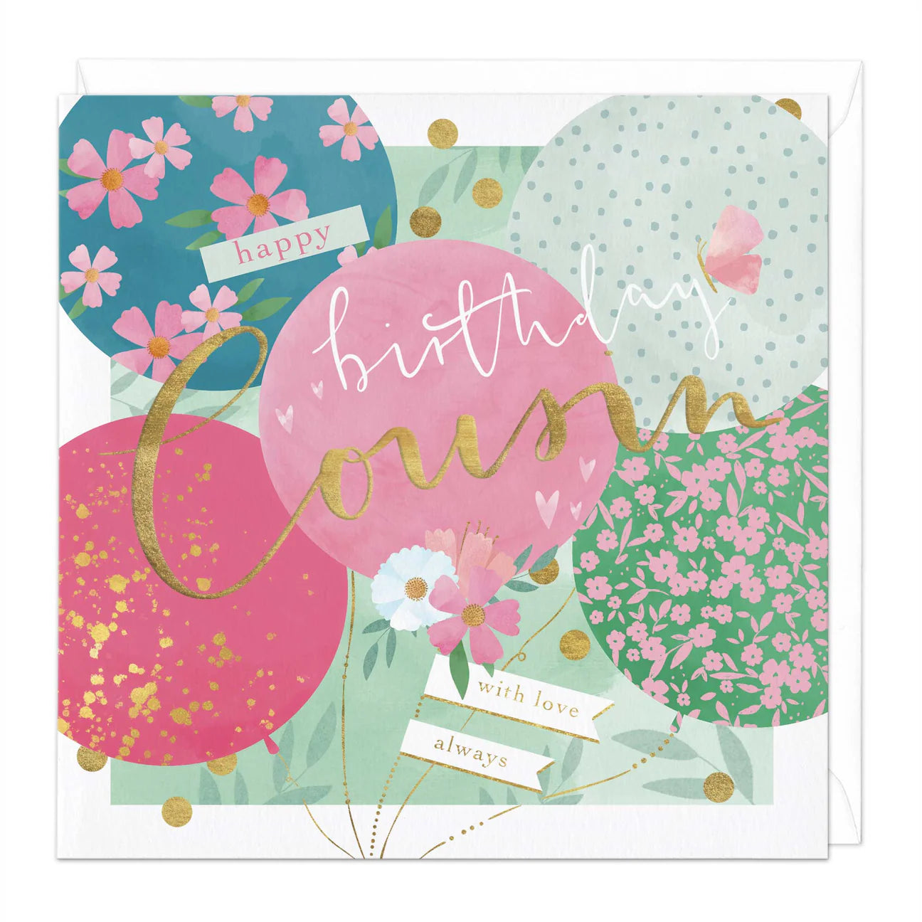 Send your cousin heartfelt wishes on their special day with our Cousin Balloons Birthday Card. Featuring various vibrant balloon designs and the loving message "With Love Always," this card is a perfect way to celebrate the bond you share and to let them know they're cherished on their birthday.