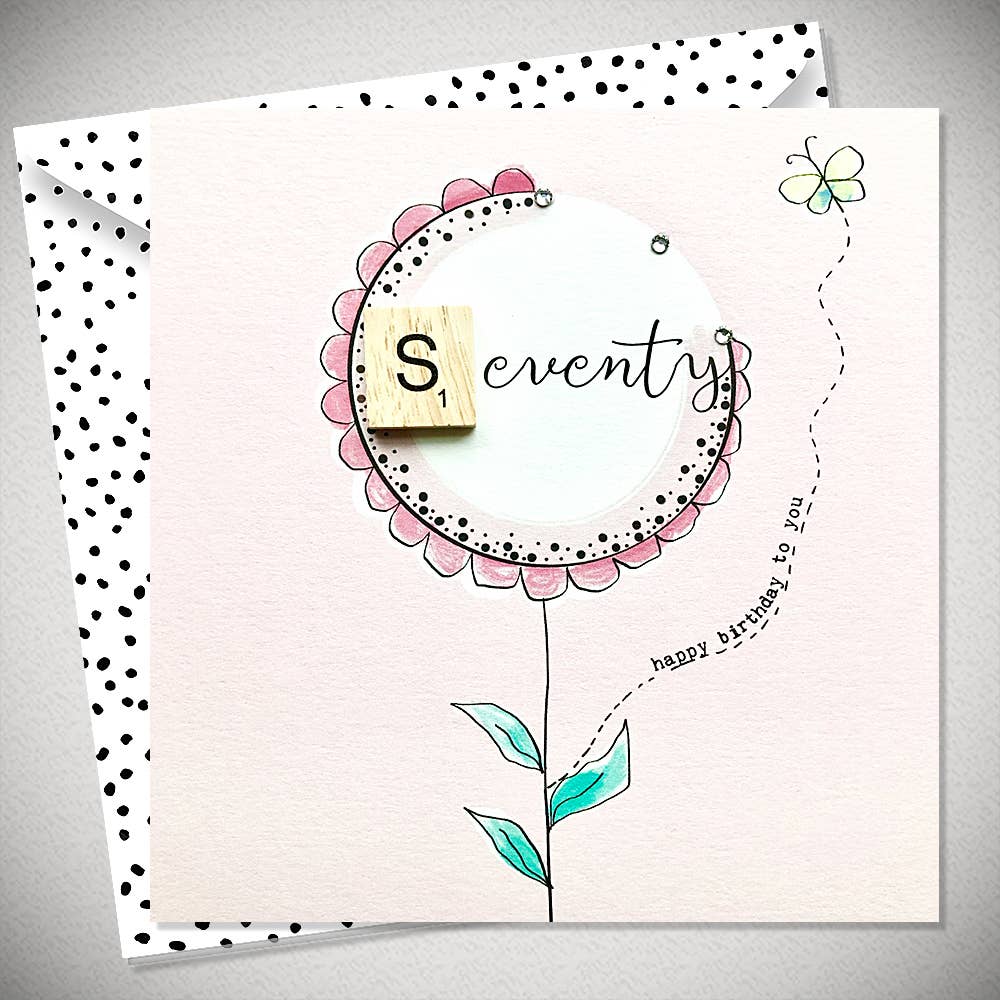 From the award-winning Bexy Boo Ltd, we bring you the HAPPY BIRTHDAY.. SEVENTY card. This product reflects our commitment to create refreshingly unique greeting cards, incorporating vintage scrabble tiles, and the most dazzling crystals, all applied individually by hand. We're not just about aesthetics, but also about the environment. Our card is printed on demand on FSC accredited board to minimize waste, and our packaging is designed to have the least impact on the environment. Every purchase supports our small business and is appreciated greatly. Thank you from us at Bexy Boo.