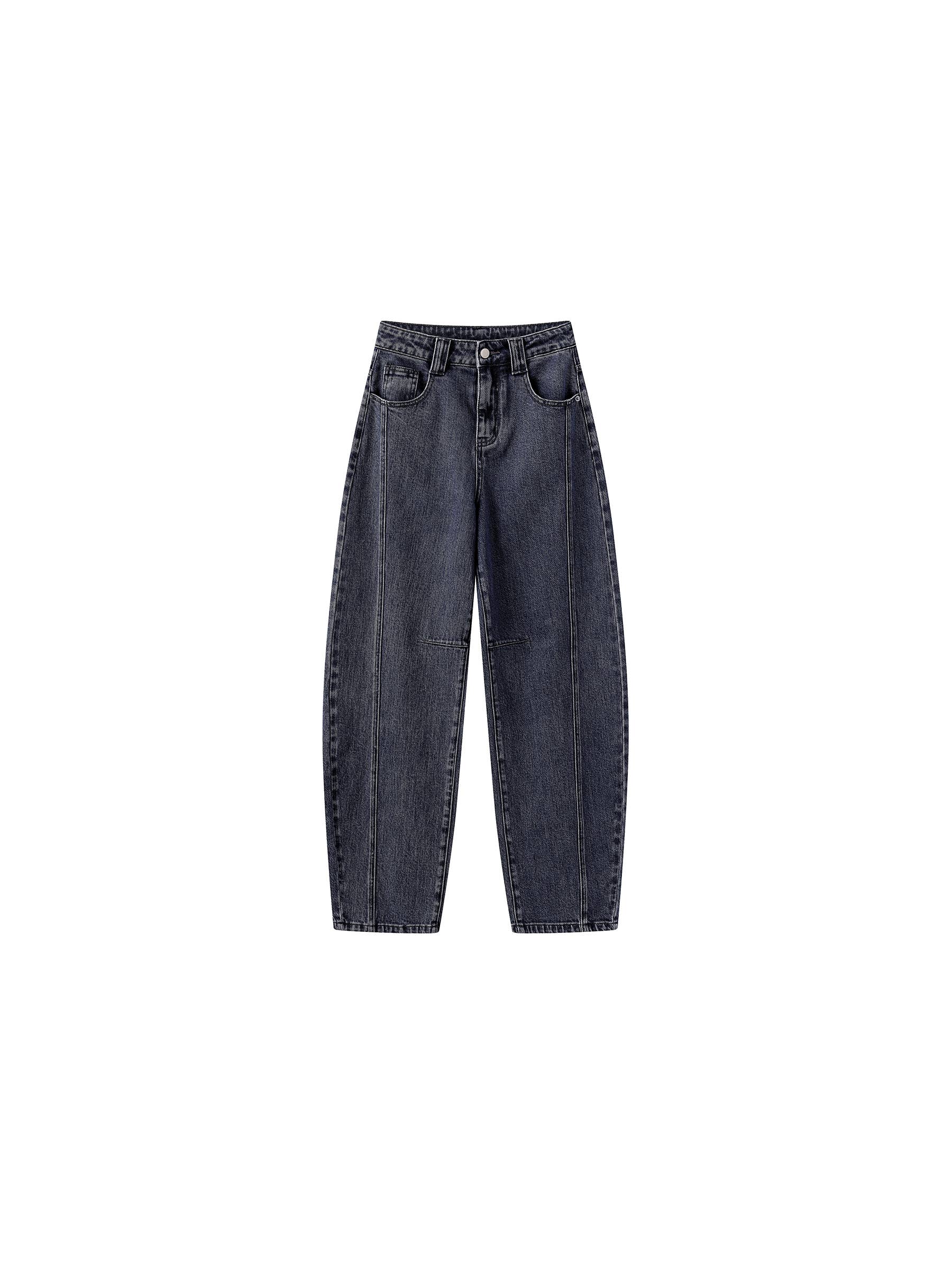 Panelled Loose-Fit Wide-Leg Tapered Jeans: Navy / L